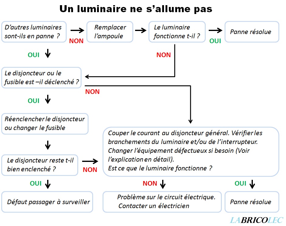 luminaire ne s'allume pas, lumière ne marche pas, panne lampe